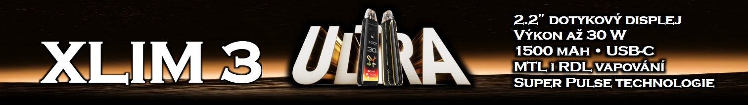 Prémiový pod systém s dotykovým displejem, výkonem až 30 W a baterií 1500 mAh. OXVA XLIM 3 ULTRA nabízí špičkovou chuť, rychlou odezvu, moderní ovládání a podporu MTL i RDL potahu. Není určeno pro náplně obsahující nikotin.