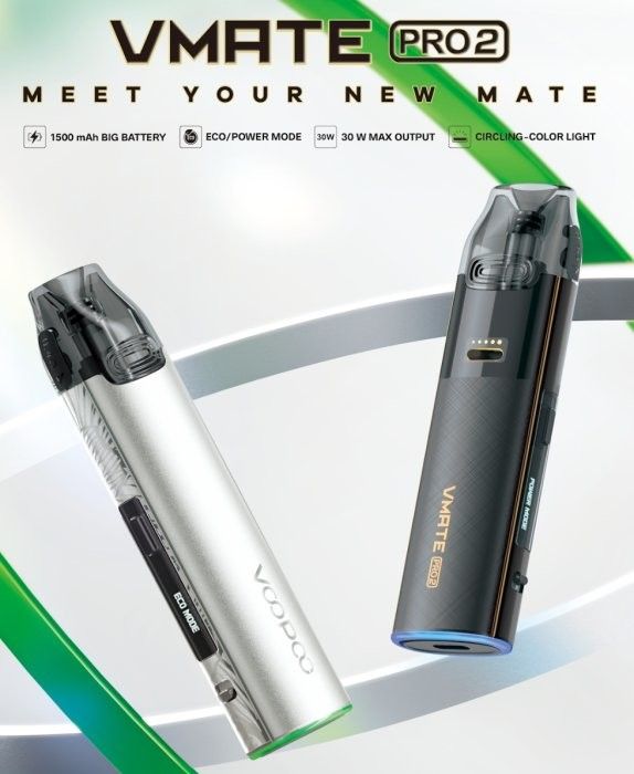 VOOPOO Vmate Pro 2 je chytrý pod systém nové generace v rámci oblíbené série Vmate, který spojuje elegantní design s výkonnými vylepšeními. Disponuje vestavěnou 1500mAh baterií, maximálním výkonem 30W a dvěma režimy potahu – ECO pro úsporný chod s inteligentní regulací výkonu a POWER pro ruční nastavení a intenzivní produkci páry. Zařízení je vybaveno 3ml cartridgí s horním plněním a ochranou proti protékání, 0.54" OLED displejem a plynulou regulací airflow, díky čemuž si jej užijí jak příznivci MTL, tak i RDL stylu vapování.
